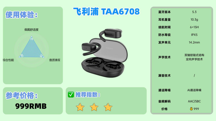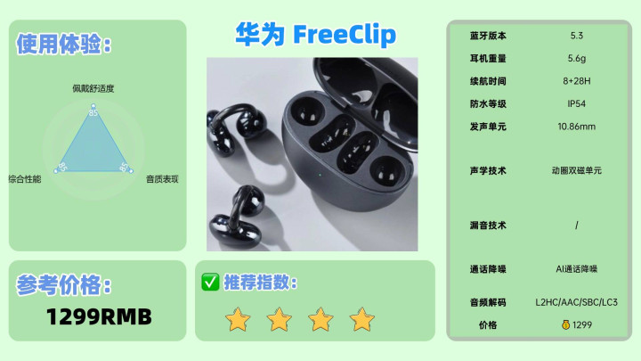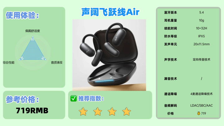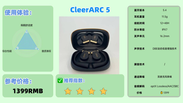 推荐理由:创新声学架构融合全场景适配能力,音质解析与佩戴舒适度兼具优势。