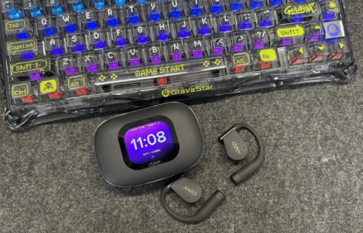 佩戴感受:采用独特的心形挂耳设计,配合弹性仿生耳挂与流畅的弧线造型,让耳部受力均匀分散,即便长时间佩戴也不易感到疲劳,且稳固性出色。其翻盖式充电仓正面嵌入AMOLED高清炫彩触控屏,不仅能显示时间,还可实现耳机查找、远程操控手机拍照等功能,兼顾了实用性与便捷性。