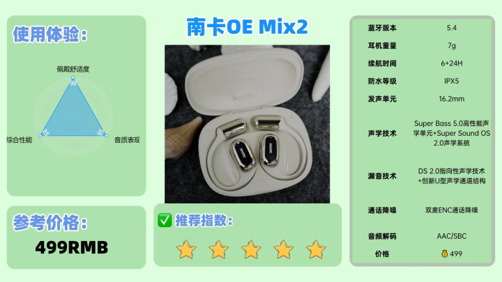 南卡OE Mix2凭借着卓越的口碑、高性价比以及出色的音质、舒适性表现,成为了开放式耳机行业标杆。在推出不到3个月的时间,仅销量极速攀升,累积用户好评的口碑更是高达99%以上,在各大社交软件上也经常看到明星达人佩戴同款,而且在在数码科技、耳机Hifi、运动圈等这类专业圈子里,都非常受推崇。